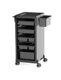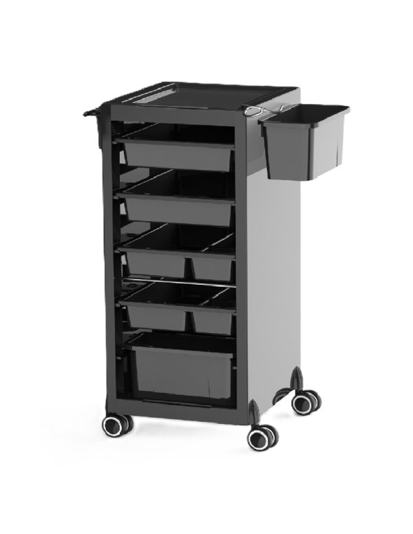 Robusto y versátil, fabricado en plástico de alta resistencia. Incluye 4 bandejas extraíbles (2 con divisiones), 2 cubetas laterales desmontables, soporte universal para secador y soporte térmico para herramientas calientes.