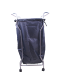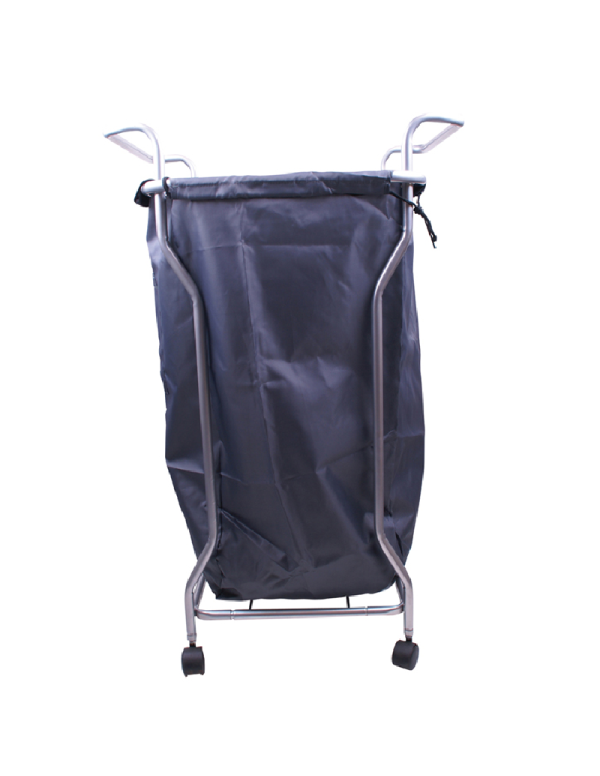 Este carrito móvil de toallas se compone de bolsa contenedora lavable y base de acero inoxidable con ruedas giratorias.