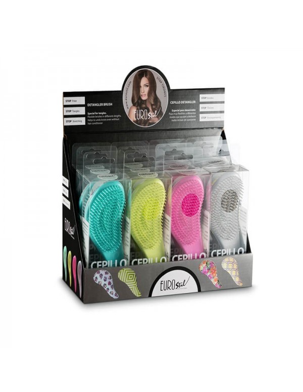 Expositor 12 cepillos de desenredar. STOP enredos, STOP tirones, STOP encrespamiento.