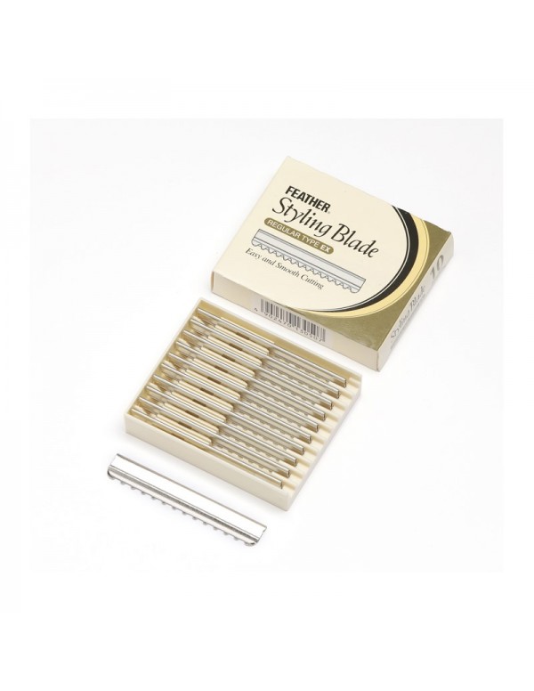 Cuchilla profesional de recambio para navaja STYLING RAZOR de la marca FEATHER. Destaca por ser de las mejores para desfilar el cabello y rasurar el cuello sin cortes,ya que posee un reborde protector de metal para evitar cortes en la piel.