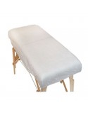 Funda de camilla desechable confeccionada con polipropileno en color blanco. Con elásticos en los extremos para ajustar al borde de la camilla. Hipoalergénica.