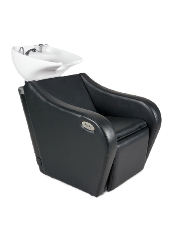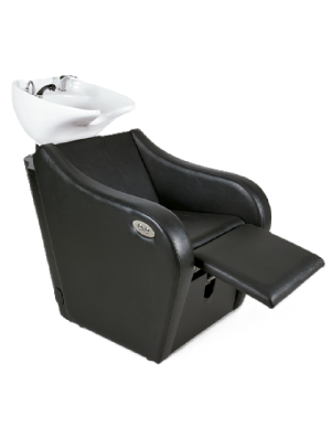 Lavacabezas tapizado serie negro con cerámica Adonis blanca, monomando con sistema antigoteo y desagüe con cestillo.