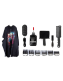 ·Palanca reguladora de cuchilla. ·2 cuchillas de Acero Japonés. ·6 peines adaptadores de medida (1.5, 3, 4.5, 6, 10, 12 mm). ·Cepillo de limpieza. ·Bote de aceite lubricante.