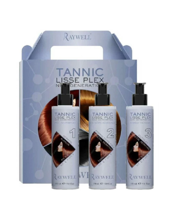 Tratamiento profesional de alisado con taninoplastia, libre de formaldehído y formulado para ofrecer un efecto liso, sedoso y duradero de hasta 3 meses. La línea Lisse Plex de Raywell combina tecnología avanzada con activos naturales para proteger, reparar y disciplinar el cabello sin comprometer su salud. Este pack contiene los tres pasos del protocolo técnico completo: champú alcalino, crema alisadora y acondicionador ácido sellador.