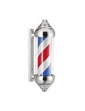 Con soporte para fijar a la pared, luz y eje interior, que hace girar la combinación de rayas rojas, blancas y azules.