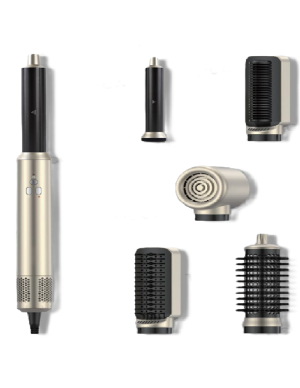 Diseño ergonómico en forma de T garantiza comodidad durante su uso prolongado. Con 6 cabezales intercambiables, 3 niveles de velocidad y 3 temperaturas ajustables, se adapta a cualquier tipo de cabello y estilo.