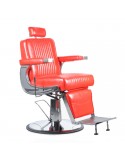 Sillón de barbero con bomba hidráulica y base redonda de metal.