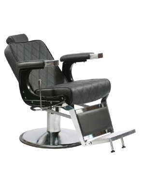 Sillón de barbero de gran calidad con reposapiés reversible y reclinable de aluminio y reposacabezas extraíble y ajustable. Tapizada en polipiel retardante al fuego. Bomba hidráulica con freno ajustable en altura.