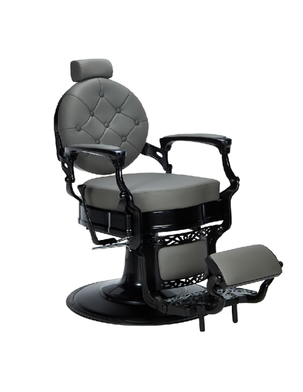 Sillón de Barbero vintage más aclamado. Su estructura es ergonómica y sus materiales, robustos. Destaca por su diseño exclusivo, tiene una base redonda, única, con un acabado metalizado y líneas marcadas.