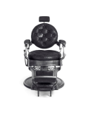 Sillón de barbero tapizado serie Negro NG3 con capitoné en el respaldo. Piezas cromadas en dorado. Diseño elegante y clásico.Ideal para cualquier barbería. Además, es retapizable para mayor personalización.