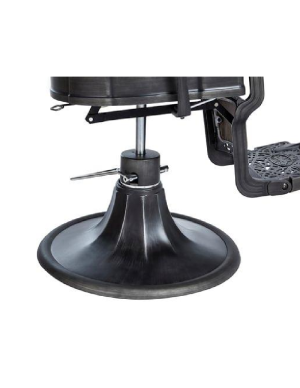 Sillón de Barbero vintage más aclamado. Su estructura es ergonómica y sus materiales, robustos. Destaca por su diseño exclusivo, tiene una base redonda, única, con un acabado metalizado y líneas marcadas.