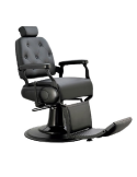 Sillón de barbero tapizado serie Negro NG3 con capitoné en el respaldo. Piezas cromadas e. Diseño elegante y clásico. Ideal para cualquier barbería. Además, es retapizable para mayor personalización.