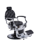 Sillón de barbero tapizado serie Negro NG3 con capitoné en el respaldo. Piezas cromadas e. Diseño elegante y clásico. Ideal para cualquier barbería. Además, es retapizable para mayor personalización.