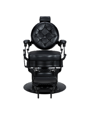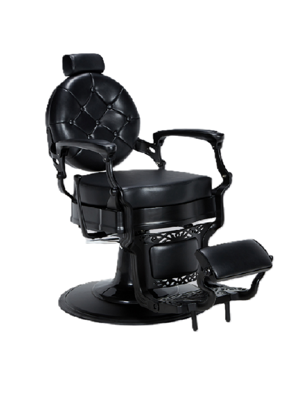 Sillón de barbero tapizado serie Negro NG3 con capitoné en el respaldo. Piezas cromadas e. Diseño elegante y clásico. Ideal para cualquier barbería. Además, es retapizable para mayor personalización.